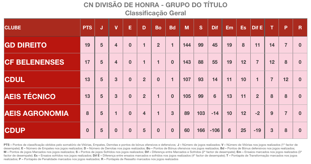 Contas feitas, o Grupo do Título fecha a primeira volta com o Direito na frente, mas com menos vantagem para o perseguidor Belenenses: apenas 2 pontos. Isto apimenta a segunda volta. A vitória de Agronomia, à qual se soma o ponto de bónus ofensivo, dá-lhes combustível para tentarem virar a situação em que se encontram na segunda metade desta fase.